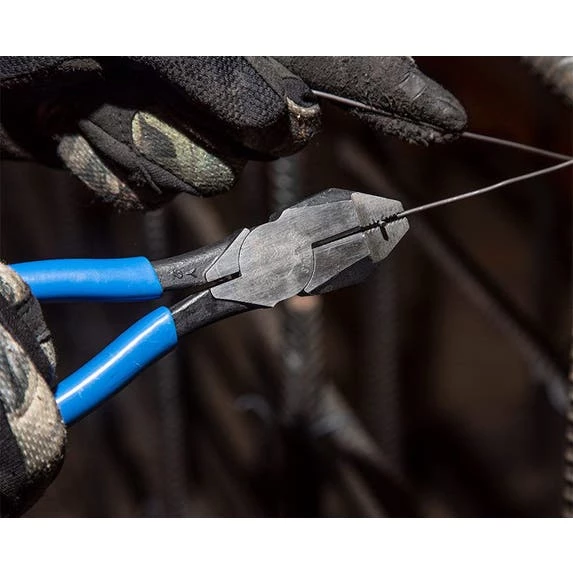 These Ironworker’s Pliers twist and snip soft annealed rebar tie wire and cut ACSR, screws, nails and most hardened wire. The knurled jaws aid in easy twisting and turning. Hook-bend in the handle provides added grip and leverage. Unique handle tempering helps absorb the ”snap” when cutting wire.