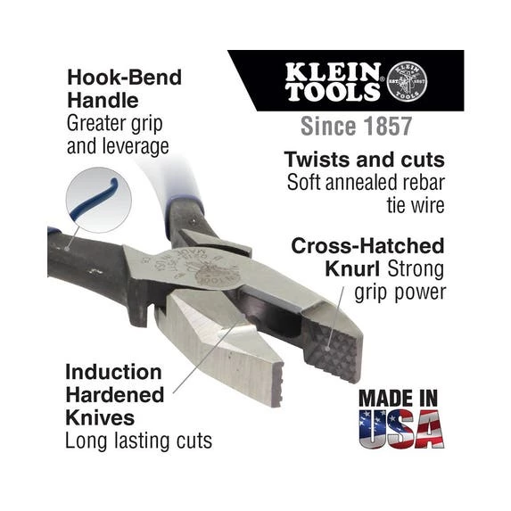 - Ironworker’s Pliers twist and cut soft annealed rebar tie wire.