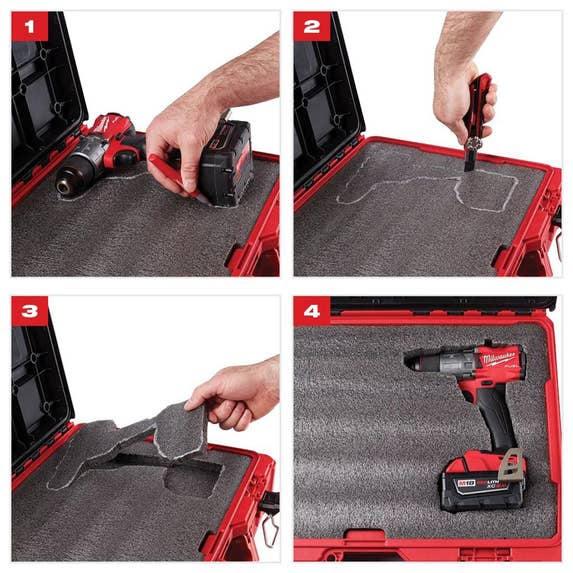 The Customizable Foam Insert allows you to fully customize your storage by cutting out custom pockets to securely store and protect your tools. The versatile insert fits in PACKOUT Tool boxes and Tool Case (48-22-8424, 48-22-8425, 48-22-8450).