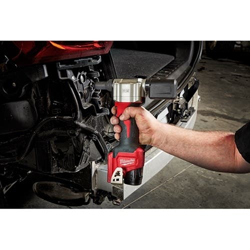 The M12 Rivet Tool is the first cordless solution that delivers fast; easy riveting while maintaining performance; durability; and size. The 2550 can pull up to 250 3/16 stainless steel rivets or 450 1/8″ steel rivets on one charge with a 1.5ah battery; and reduces muscle effort from a hand tool by 65%. No compressors or hoses during set up and operation makes this tool a great replacement to pneumatic products. 2X longer life over current cordless solutions delivers greater durability from common jobsite conditions and use. This is the most compact cordless rivet tool on the market; measuring only 6.5 in length allowing users more access in tight spaces. The M12 Rivet Tool is part of the M12 battery platform; offering 90+ solutions on one battery system.
