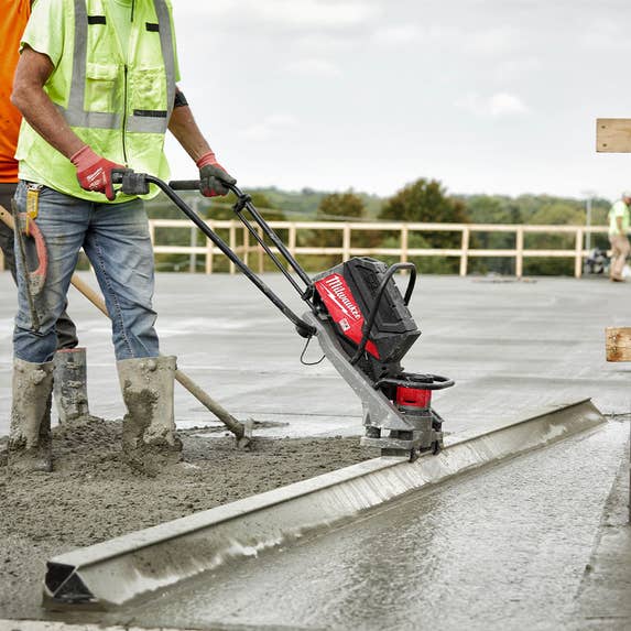 The Milwaukee MX FUEL Vibratory Screed provides consistent starts and the most reliable pours with the power to pull up
