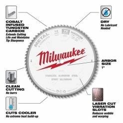 Milwaukee Tools Milwaukee 12″ 60 Tooth 1″ Arbor Circular Saw Metal Cutting Blade 48-40-4265