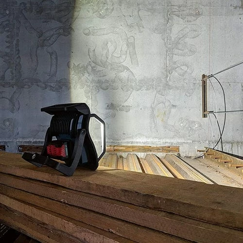 This cordless; portable floodlight with Bluetooth provides high-powered brightness; with 4;000 lumens; which can light up a large jobsite. Built with a solid metal body; the floodlight two heavy-duty bars; which help to guard the LED from impact. Users can dim the light; set it on a timer; check the battery status; and control groups of lights using a mobile device.