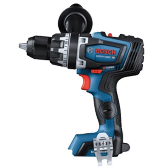 This Bosch 18V PROFACTOR hammer drill/driver is built for tough drilling and driving jobs, especially drilling large holes straight. The 1/2 In. GSB18V-1330C Hammer Drill/Driver is part of the PROFACTOR System, which pairs BITURBO Brushless Technology with a CORE18V PROFACTOR battery. BITURBO Brushless Technology is a high-performance motor and drive-train system designed to deliver power comparable to high-demand corded tools. This GSB18V-1330C 18V Connected-Ready Brute Tough 1/2 In. Hammer Drill/Driver features connectivity (module sold separately), linking to connected device via Bosch Toolbox App to customize settings, set custom angles, receive feedback and set specific angles for the Electronic Angle Detection feature. It has a powerful brushless motor that provides efficient power for up to 1,330 In.-Lbs. of max torque. It has variable speed settings: high speed (0-2,200 rpm) and high power (0-550 rpm).