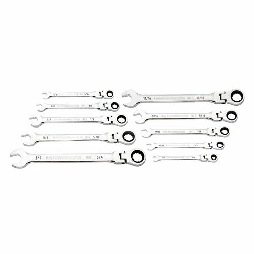 10 Pc. 90-Tooth 12 Point Flex Head Ratcheting Combination SAE Wrench Set