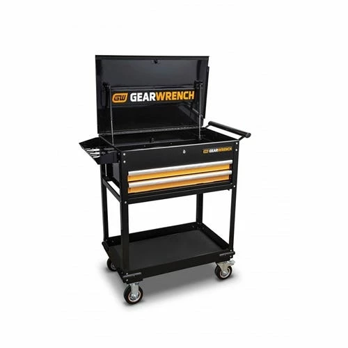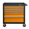 The 32″ 2 Drawer Black & Orange Utility Cart features 4 large; heavy-duty polyurethane casters for greater mobility and strength; Along with 2 stationary and 2 dual-locking that lock caster pivot and wheel rotation.