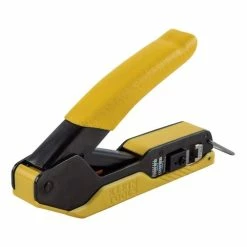 - Crimps Klein Tools’ RJ45 Pass-Thru connectors and trims conductor wires in one step.