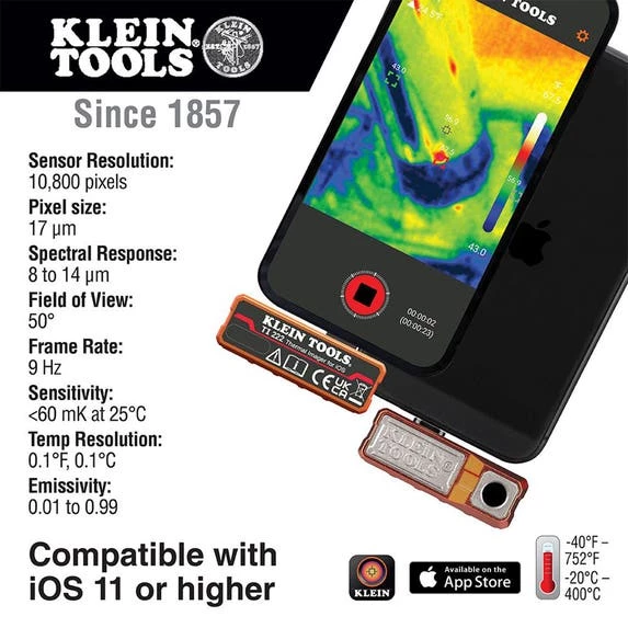 - Klein Tools Thermal Imager App is available for free in the App Store