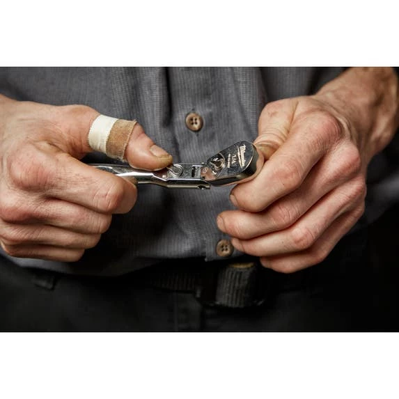 The MILWAUKEE® 1/4” Drive 6” Flex Head Ratchet with a 4⁰ arc swing provides better access and is more adaptable to working in spaces with different angles. The ratchet head can flex to 7 different positions and has a lever to lock the head in place. A slim profile head and flush directional level offer more accessibility.The all-chrome finish makes cleaning the flex head ratchet easy.This ratchet is backed by Milwaukee’s Mechanics Hand Tools Lifetime Guarantee.