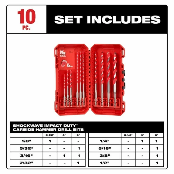 10pc. SHOCKWAVE Impact Duty Carbide Hammer Drill Bit Kit for PACKOUT 48-20-9058