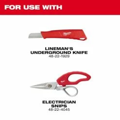- Front pocket holds Electrician Snips (48-22-4045) NOT INCLUDED