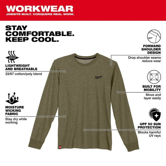The Milwaukee Long Sleeve Hybrid Work Tee is a lightweight and breathable solution that allows you to STAY COMFORTABLE