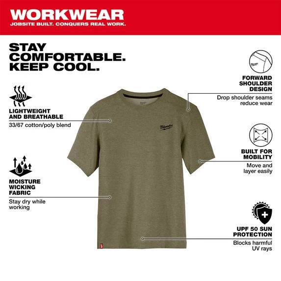 The Milwaukee Short Sleeve Hybrid Work Tee is a lightweight and breathable solution that allows you to STAY COMFORTABLE