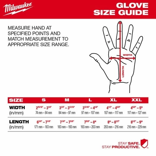 The MILWAUKEE Impact Cut Level 3 Nitrile Dipped Gloves offer Impact Protection with High Dexterity. These gloves are ANSI/ISEA Impact Level 2 Rated; and ANSI Cut Level 3 Rated. Impact rated enhanced TPR has been added to the back of the hand for added protection. The dipped gloves have a reinforced nitrile coating between the thumb and index finger for enhanced durability in high wear points. They are 18 gauge for high dexterity when handling small objects and have SMARTSWIPE touchscreen compatible fingertips so users can access their devices without taking off their gloves.