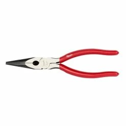 The MILWAUKEE 8 in. Long Nose Pliers feature a 2 in. gripping nose for pulling wire and material through rough-in holes and other tight spaces. The pliers head features integrated reaming ridges for removing burrs from the inside of smooth pipe as well as an integrated wire cutter. For added functionality; the MILWAUKEE Long Nose Pliers feature an integrated fish tape puller.