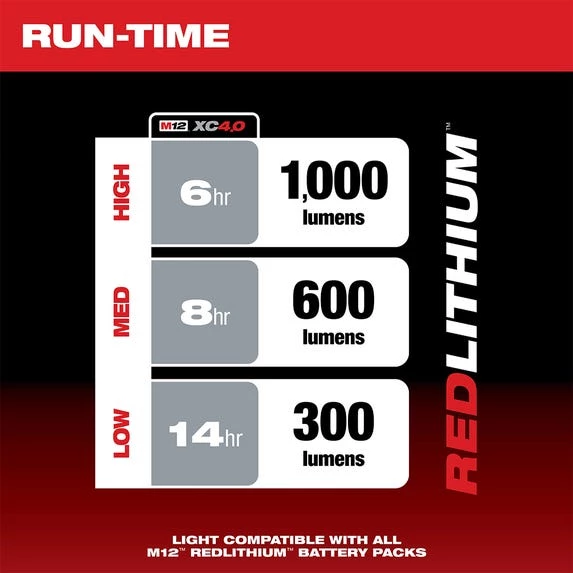 - 6 Hours of Run-time on HIGH.