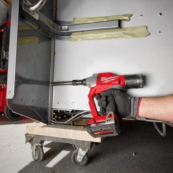Milwaukee’s M18 FUEL ¼” Lockbolt Tool w/ ONE-KEY is the fastest tool in the market. It eliminates the need for hoses and compressors while delivering up to 3X longer life than other cordless lockbolt tools. This gun significantly increases productivity, installing lockbolts up to 50% faster than cordless competitors. The premium steel alloy 3-jaw design delivers more work between jaw changes. While lightweight, this Milwaukee lockbolt tool was designed to withstand harsh shop or assembly plant environments, manufactured with an all-metal gearcase, impact strength plastics, and protective over-mold. The POWERSTATE Brushless Motor delivers 4,500 lbs. (20kN) of pulling force for Magna-Grip, C6L, C120L, Bobtail & Hucktainer (with Adapter 49-16-2661HT) lockbolts in all materials. This tool pulls up to 1200 1-1/4” Aluminum Magna Grip Lockbolts on one charge with an M18 REDLITHIUM XC5.0Ah battery (not included). M18 REDLITHIUM Battery Packs fit all M18 tools, providing you with more work per charge and more work over the battery life. REDLINK PLUS Intelligence ensures maximum performance and protects the Lockbolt tool and battery against overloads, over-heating, and over-discharge. The MILWAUKEE M18 FUEL ¼” Lockbolt Tool has ONE-KEY compatibility, allowing you to track and manage your tool.