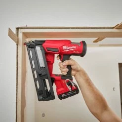 The Milwaukee M18 FUEL 16 Gauge Angled Finish Nailer Kit provides peak productivity at your jobsite, delivering unmatched