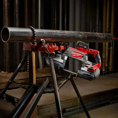 The M18 FUEL Band Saw cuts faster than its corded counterparts; provides the same legendary durability of a Milwaukee corded band saw; and delivers up to 2X more run time than other cordless options. Utilizing a POWERSTATE Brushless motor and Constant Power Technology; the M18 FUEL Deep Cut Band Saw cuts faster than corded band saws. Equipped with Jobsite Armor Technology; the tool is better protected from drops and debris with a proprietary composite material and crush zone barriers to absorb impacts.