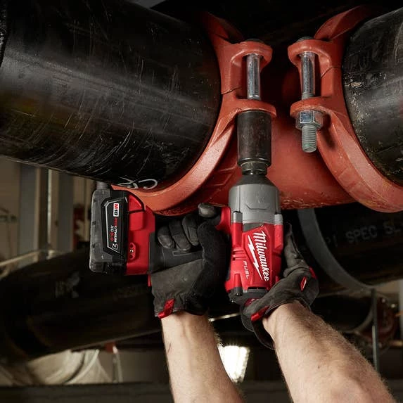 Our M18 FUEL™ high torque impact wrench with friction ring eliminates the need to use a pneumatic tool for those stubborn and rusted bolts by delivering 1,000 ft./lbs. of fastening torque and 1,400 ft./lbs. of nut-busting torque. With 2X faster removal speed, our users will be able to get the job done faster and be more productive throughout their day. By providing the industry’s most compact cordless high torque impact wrench at 8.39 in. length, this tool allows for more access in tight spaces. 4-Mode drive control with bolt removal mode gives our users the most control over their fasteners. Bolt removal mode gives our users more control when removing fasteners by slowing to 750 RPM once the fastener has been busted loose. Our tool offers quick, tool-free socket changes with a 1/2 in. friction ring anvil. A premium rubber overmold material gives our users ultimate comfort during prolonged use while lasting longer against corrosive materials. Our M18 REDLITHIUM™ XC5.0 Extended Capacity Resistant Battery Packs included provide increased protection against oils, greases, and solvents.