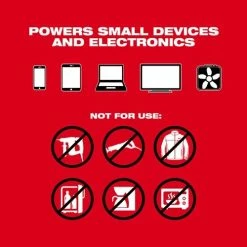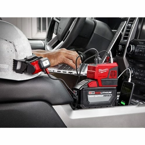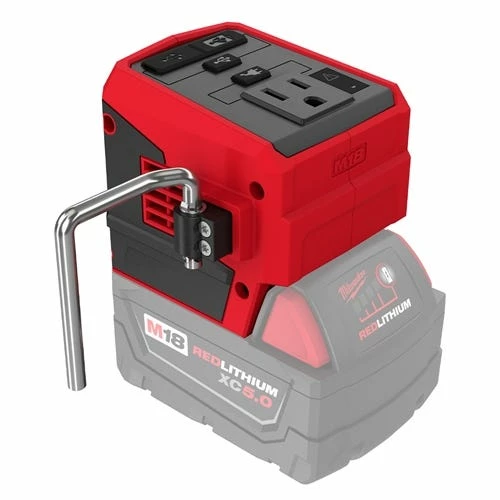 The MILWAUKEE M18 TOP-OFF 175W Power Suply delivers faster simultanous power to personal devices and small electronics. Attach any M18 battery to provide continuous power or recharge devices with (1) AC 120V outlets; (1) USB-C PD port; and (1) USB-A port. Quickly charge up to three devices at the same time; without the barriers of speed throttling. With the USB-C PD port (45W); this battery inverter is capable of recharging devices; from a fully depleted state to 80% capacity up to 75% faster than conventional wall chargers (5W). The compact portable power supply has an attached metal rafter hook that can be extended to hang it from carts; lumber; or other jobsite materials when worksurface space is limited. Instantly set up a mobile workstation or keep electronics securely within eyeshot; rather than making frequent trips to a wall outlet. This tool is not recommended to run large devices and power tools or to charge batteries and heated gear.