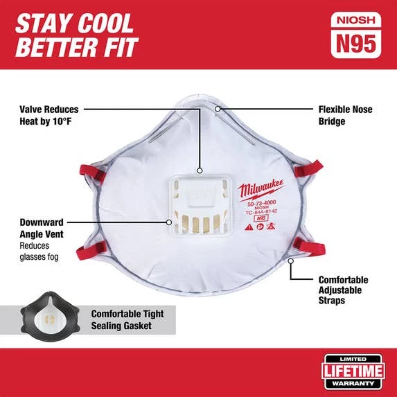 The Milwaukee N95 Valved Respirator with Gaskets are designed to help you stay cool while providing you with a better