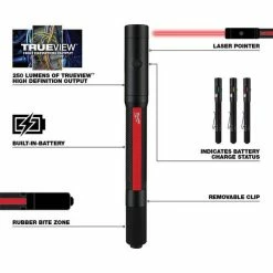 The Milwaukee Rechargeable 250L Penlight w/ Laser offers you faster, more accurate inspections. This rechargeable penlight delivers 250 lumens of TrueView High Definition Output, and an integrated laser pointer ensures faster inspections and accurate communication on the jobsite. With two output modes, you get the optimal light or run-time up-to 8 hours for any task.