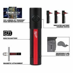 The Milwaukee Rechargeable 500L Everyday Carry Flashlight w/ Magnet allows you to work hands-free and delivers 500 lumens of TRUEVIEW High Definition Output while maintaining a compact size designed to fit in your pocket and carry at all times. You’ll work faster with the ability to quickly switch from handheld to hands-free with the magnetic base and reversible clip for easy attachment to the brim of your hat.