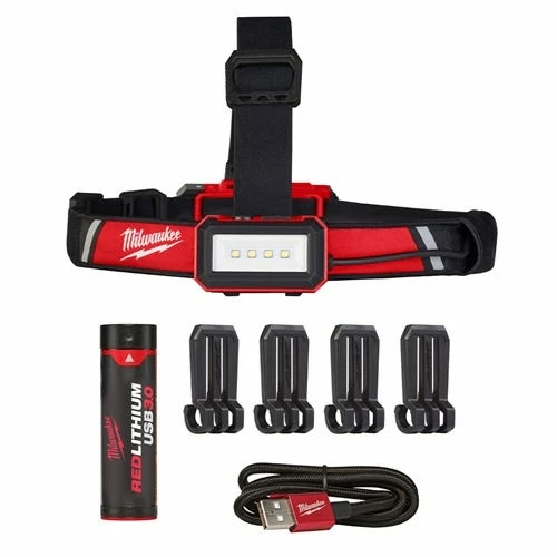 The Milwaukee USB Rechargeable Low-Profile Headlamp is powered by REDLITHIUM USB and delivers 600-lumens of TRUEVIEW High Definition Output. The flood light headlamp features an ultra-thin light head that provides an unobstructed view with 125° of flood beam coverage.