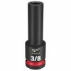 MILWAUKEE® SHOCKWAVE Impact Duty™ 1/2 Drive 6 Point Lug Nut Wheel Sockets feature the Most Durable, Non-Marring Sleeve to protect rims during tire changes. The ARMOR-GUARD™ Sleeve is made with premium, durable plastic for Lasting Protection against cracking or shredding during wheel installation and removals. The sockets are thin-walled for easy access in tight wheel assemblies and feature a non-marring plastic insert to protect lug nuts during use. The sleeves are color-coded, Gray for Metric sizes and Red for SAE sizes, to ensure easier socket selection while also featuring stamped & ink filled sizes for the Boldest, Longest Lasting markings. Milwaukee sockets are engineered with high strength forged steel for optimized performance in heavy-duty applications. The customizable Socket Rail comes with removable end caps to add or take off socket clips for optimal storage. The dual-hole design and ring groove allow for easy socket attachment and removal. MILWAUKEE® SHOCKWAVE Impact Duty™ Lug Nut Wheel Sockets are optimized for use with 1/2″ drive impact wrenches, drivers, ratchets, and adapters and meet ASME industry standards for thin-walled sockets.