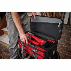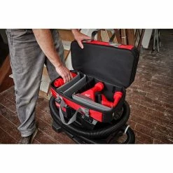 - Top storage area is optimized for longer vacuum tools and has an enclosed zipper area for smaller pieces
