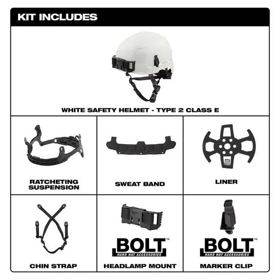 White Unvented Type 2 Class E Safety Helmet w/ BOLT 48-73-1301