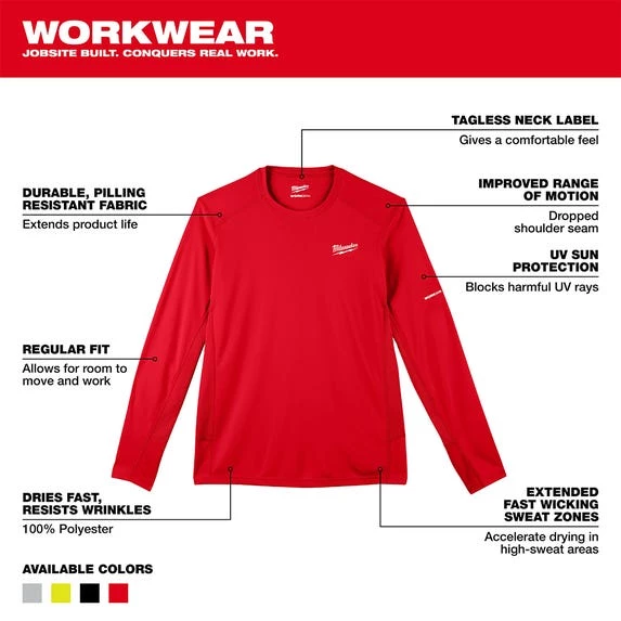 The Milwaukee WORKSKIN Lightweight Performance Long Sleeve Shirt is designed for tradesmen who need their next-to-skin
