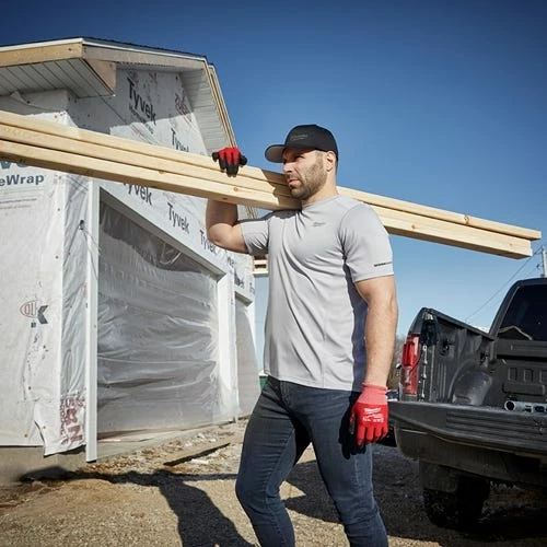 The WORKSKIN Lightweight Performance Short Sleeve Shirt is designed for tradesmen who need their next-to-skin layer to dry fast; keep them cool; and protect them from harmful UV rays. Get a work shirt that matches your level of performance every day with a MILWAUKEE WORKSKIN. These high-performance work shirts are made from moisture-wicking fabric that helps you stay dry; while the 100% polyester material dries fast and resists wrinkles; unlike standard cotton base layers.